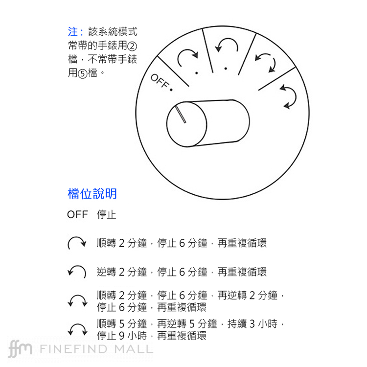 3. 逆時針旋轉2分鐘,停止6分鐘,再重複循環